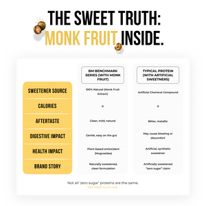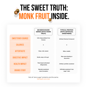 Both flavours are sweetened with Monk Fruit, ensuring no added sugar while maintaining a clean, natural taste. The result is a protein shake that feels light, mixes well, and fits seamlessly into your daily routine, whether post-workout or between meals.